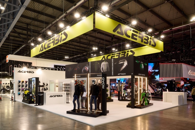The stand designed for Acerbis, a leading company in the sports clothing and accessories sector, with a long history of excellence, represents an authentic celebration of technology and design. Designed to emphasize the key values of the brand - resistance, durability and innovation - the project stands out for its architecture with a strong visual and sensorial impact.