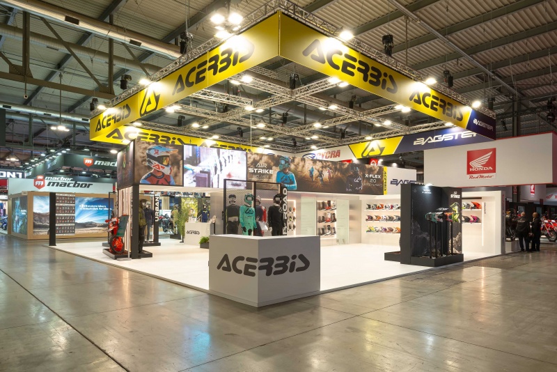 The stand designed for Acerbis, a leading company in the sports clothing and accessories sector, with a long history of excellence, represents an authentic celebration of technology and design. Designed to emphasize the key values of the brand - resistance, durability and innovation - the project stands out for its architecture with a strong visual and sensorial impact.