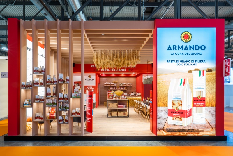 In continuity with the communicative choice adopted for the exhibition space of the past edition of TuttoFood, De Matteis presents itself at the trade show by representing itself in a combination of elements that refer to the agricultural world: a way to create a direct link between its audience and Armando pasta which becomes the expression of an integrated production system between industry and agriculture based on common principles and shared values.