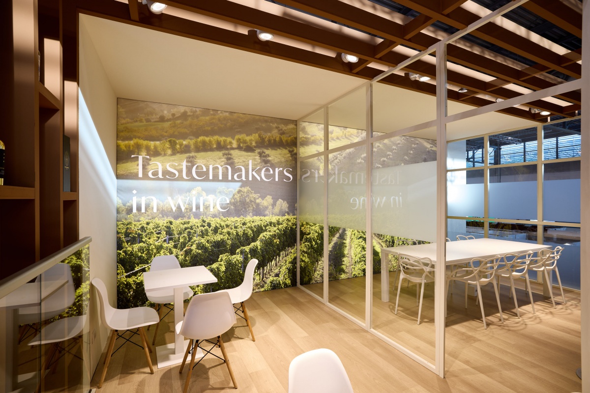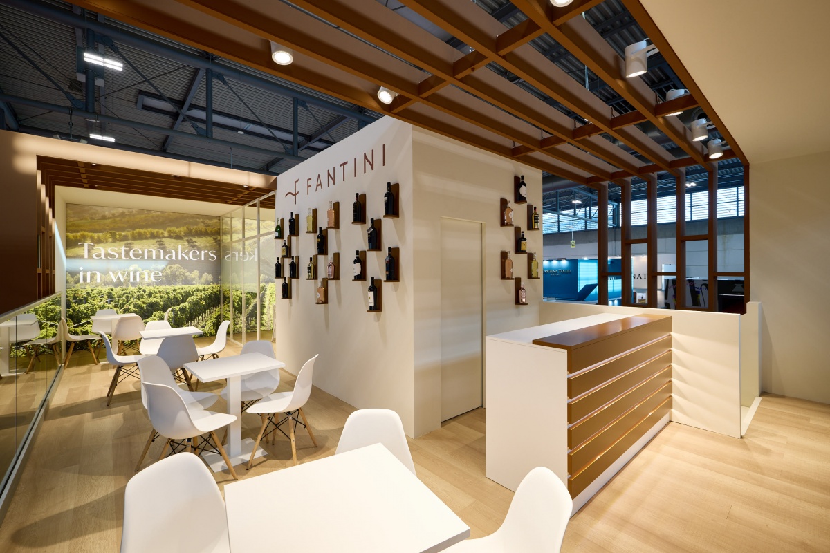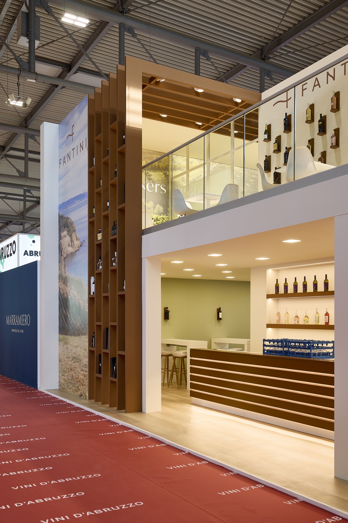 The choice of warm colors, reminiscent of earthy tones, symbolizes the place of origin of each product, from which everything begins. Founded in 1994 in the picturesque town of Ortona, Fantini is now recognized worldwide for its high-quality wines, produced using advanced techniques that fully respect nature. This stand is not just a showcase but a tribute to the richness and beauty of Abruzzo.