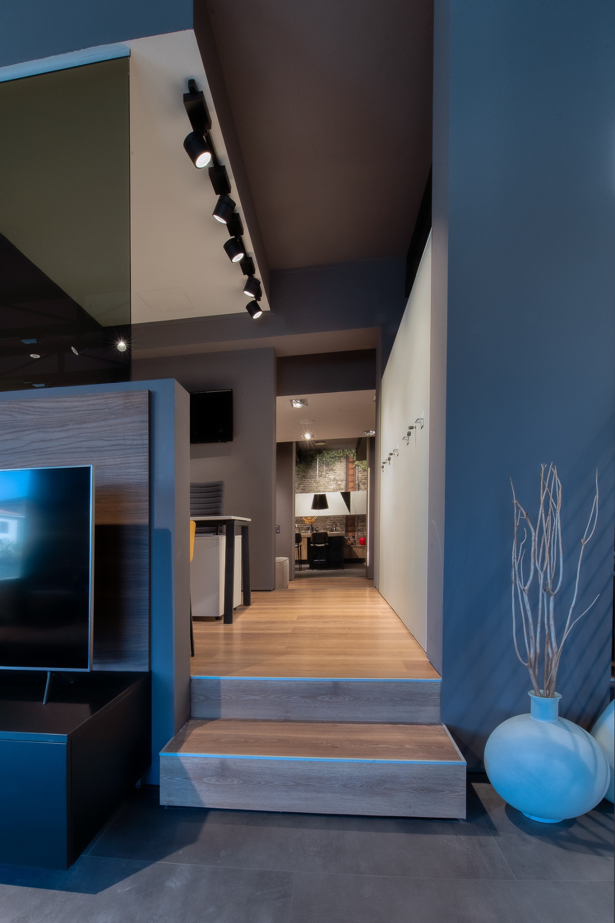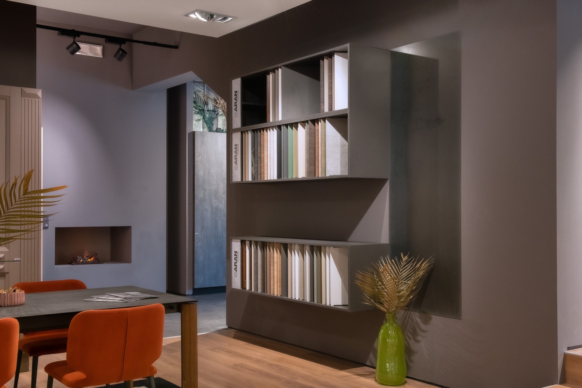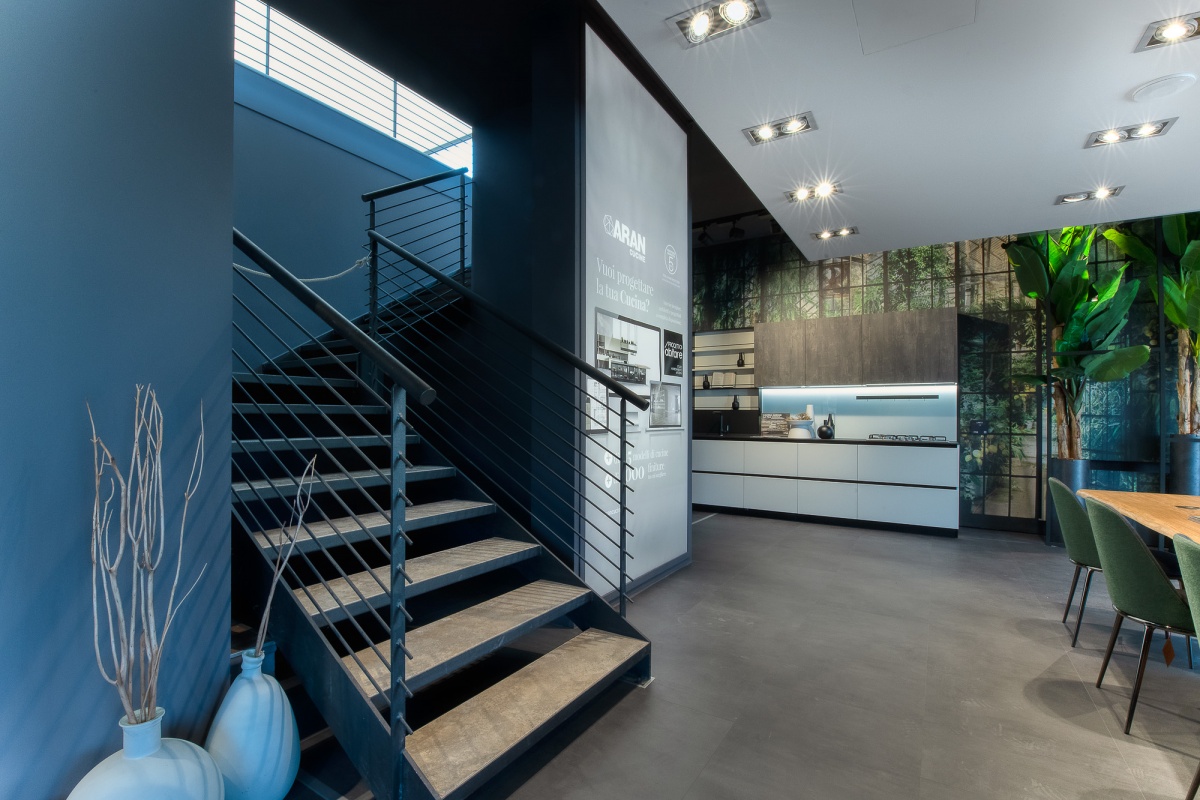 Il flagship store di Aran Cucine è uno spazio espositivo di 300 mq caratterizzato da tre grandi vetrate dal forte impatto visivo, 8 modelli di cucine esposte, tra design, contemporary, minimal e industrial insieme ad un'ampia area tecnica ricca di materiali, tra i più moderni e innovativi.