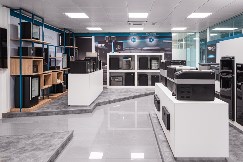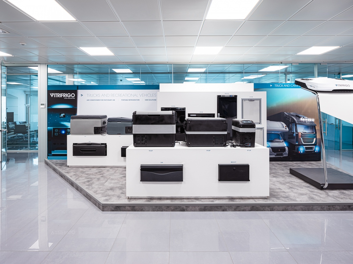 Abbiamo realizzato una sala mostre all'interno della sede Vitrifrigo di Pesaro, importantissima realtà internazionale operante nel settore Refrigerazione Industriale, che ha fondato la propria politica aziendale sulla continua ricerca e sviluppo per quanto riguarda il design, la funzionalità e le prestazioni dei propri prodotti.