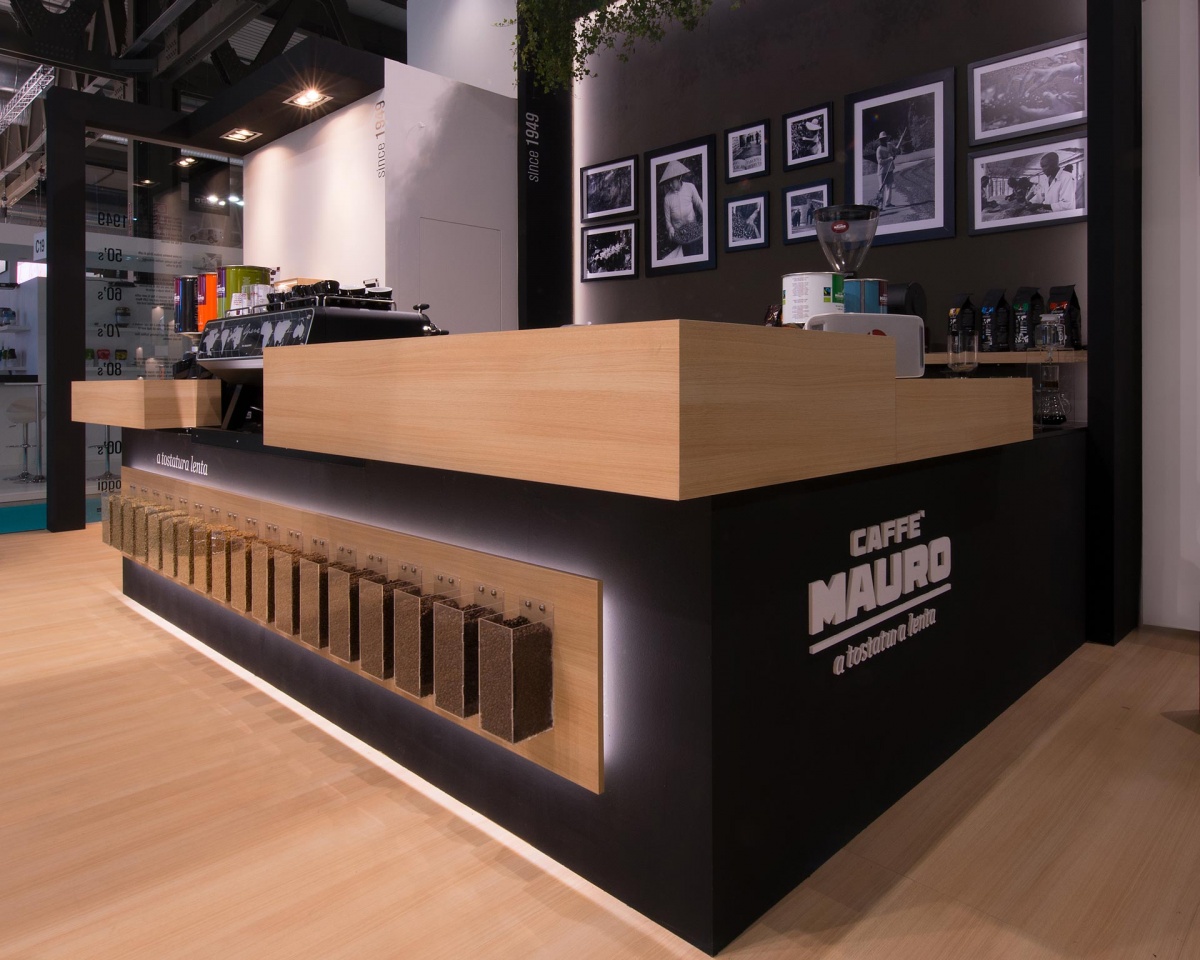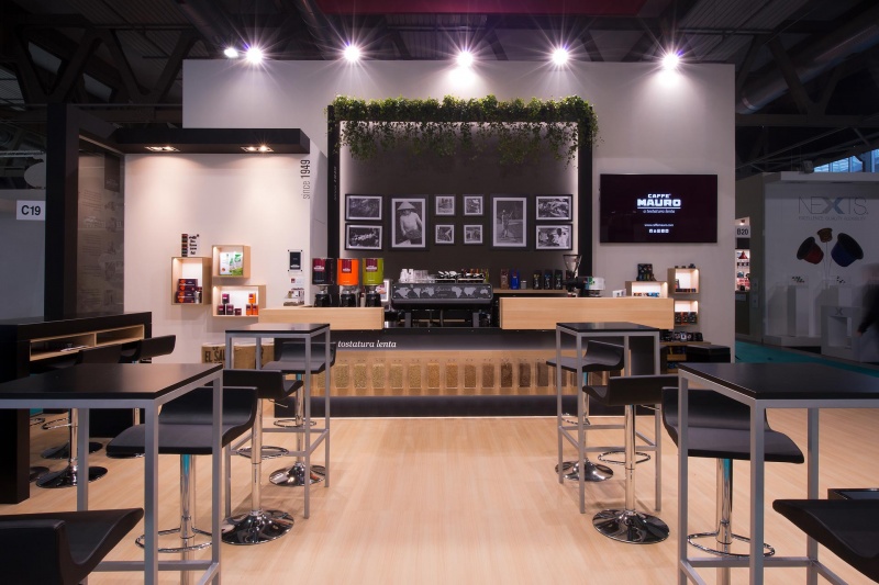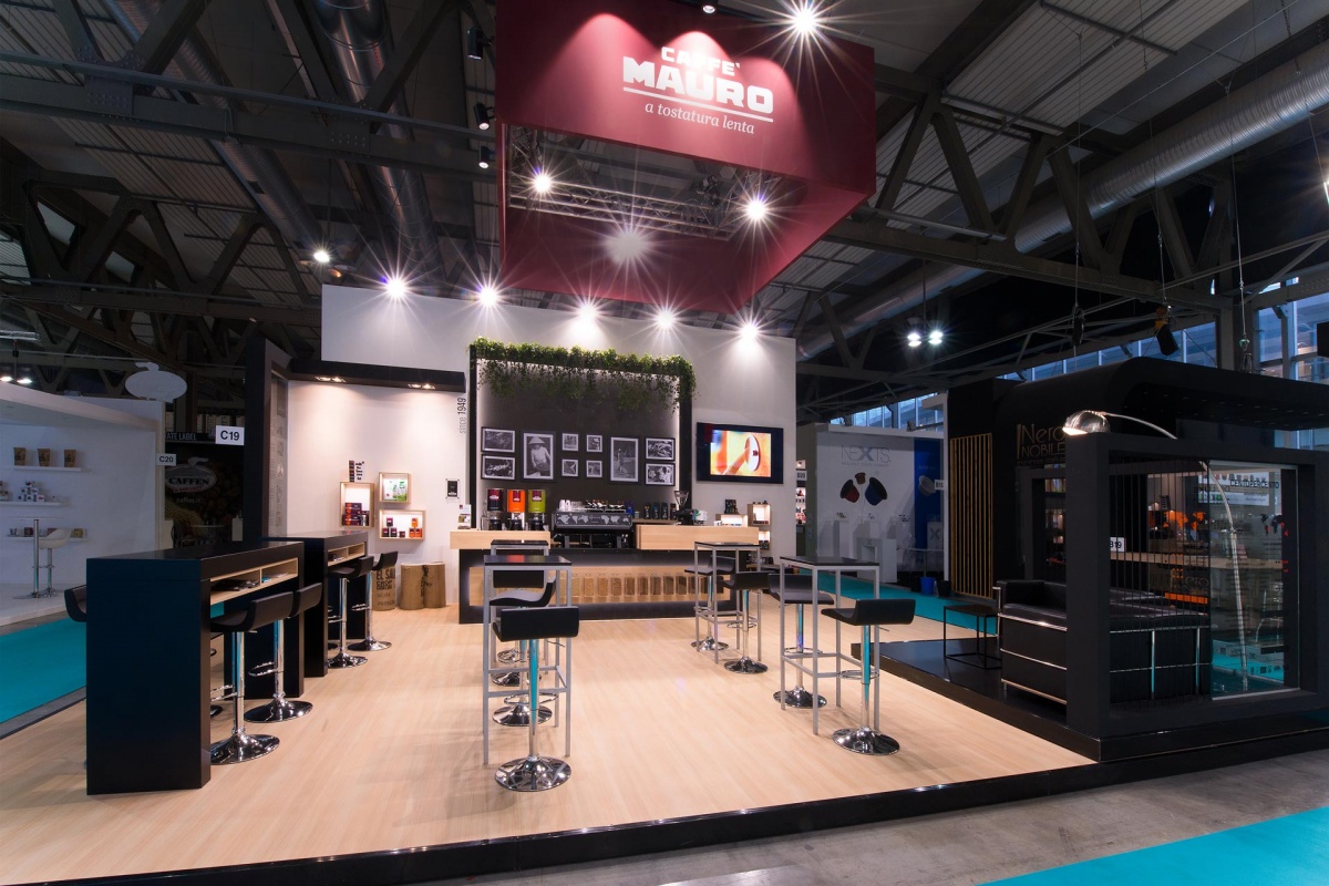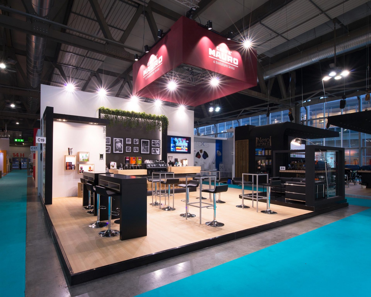 Abbiamo seguito la realizzazione degli allestimenti per l'azienda Caffe Mauro, in diversi appuntamenti fieristici italiani.