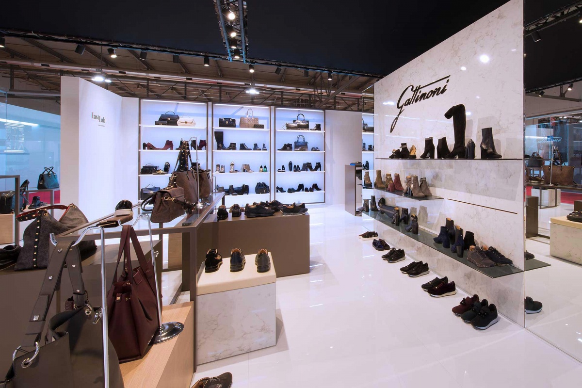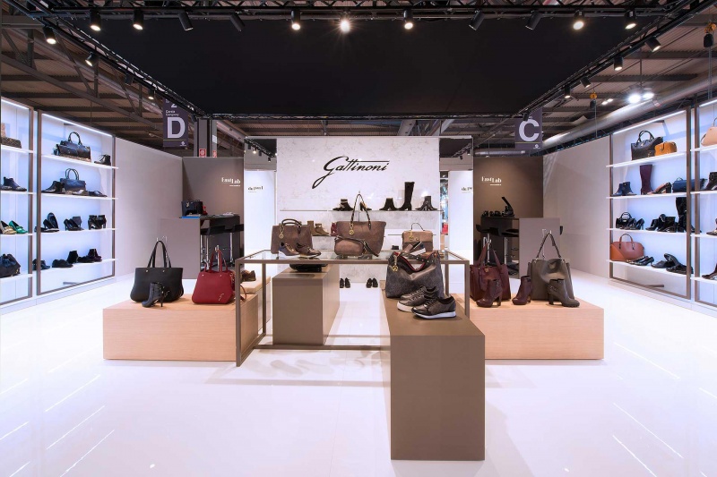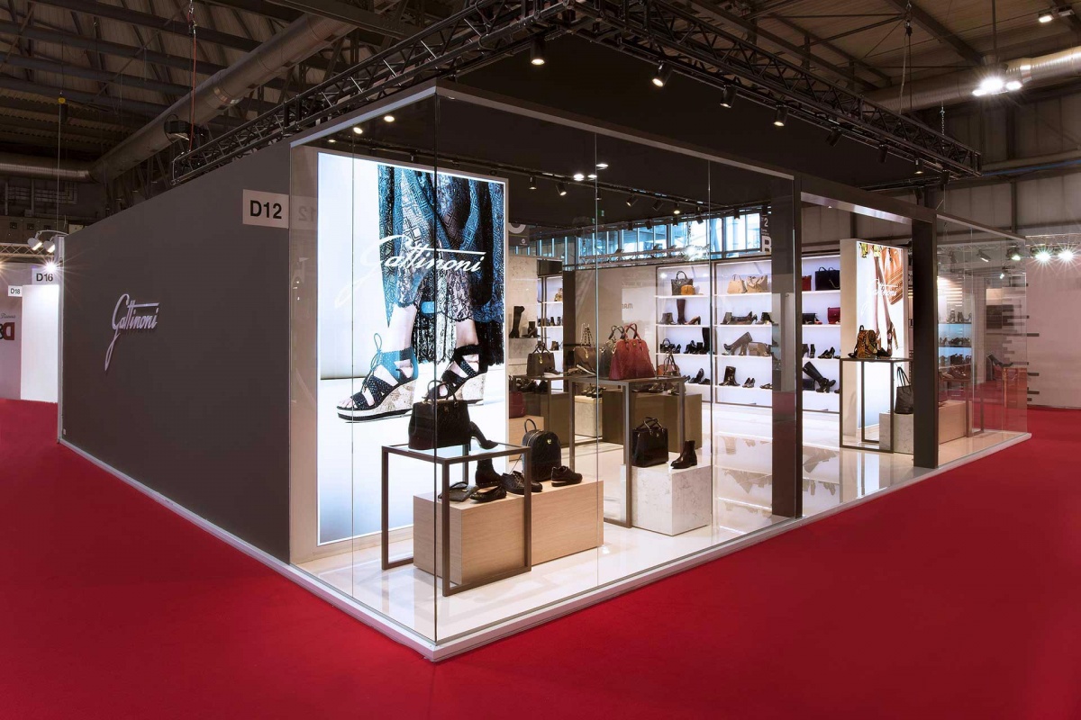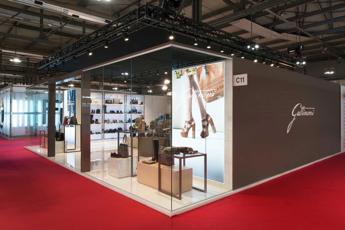 Il noto brand di accessori Gattinoni fa il suo debutto alla manifestazione Micam di Milano, e sceglie di realizzare uno stand dal design moderno e molto luminoso, un layout open space con mobili espositori dotati di illuminazione a led, capaci di mettere in risalto la collezione esposta.