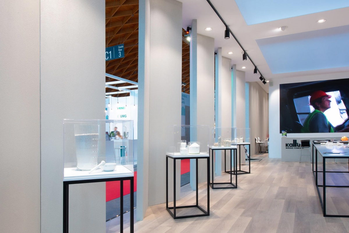 L’intento è quello di ricreare uno spazio espositivo pensato per esporre materie prime minerarie e granulometrie, impiegate nei settori ceramica, rivestimenti, vetro, cristalli e compositi. Il tutto prende forma all’interno dello stand, attraverso delle teche in vetro, che con la giusta illuminazione esaltano il prodotto e la sua qualità. A seguire una gallery degli stand prodotti nelle varie edizioni di questa manifestazione.