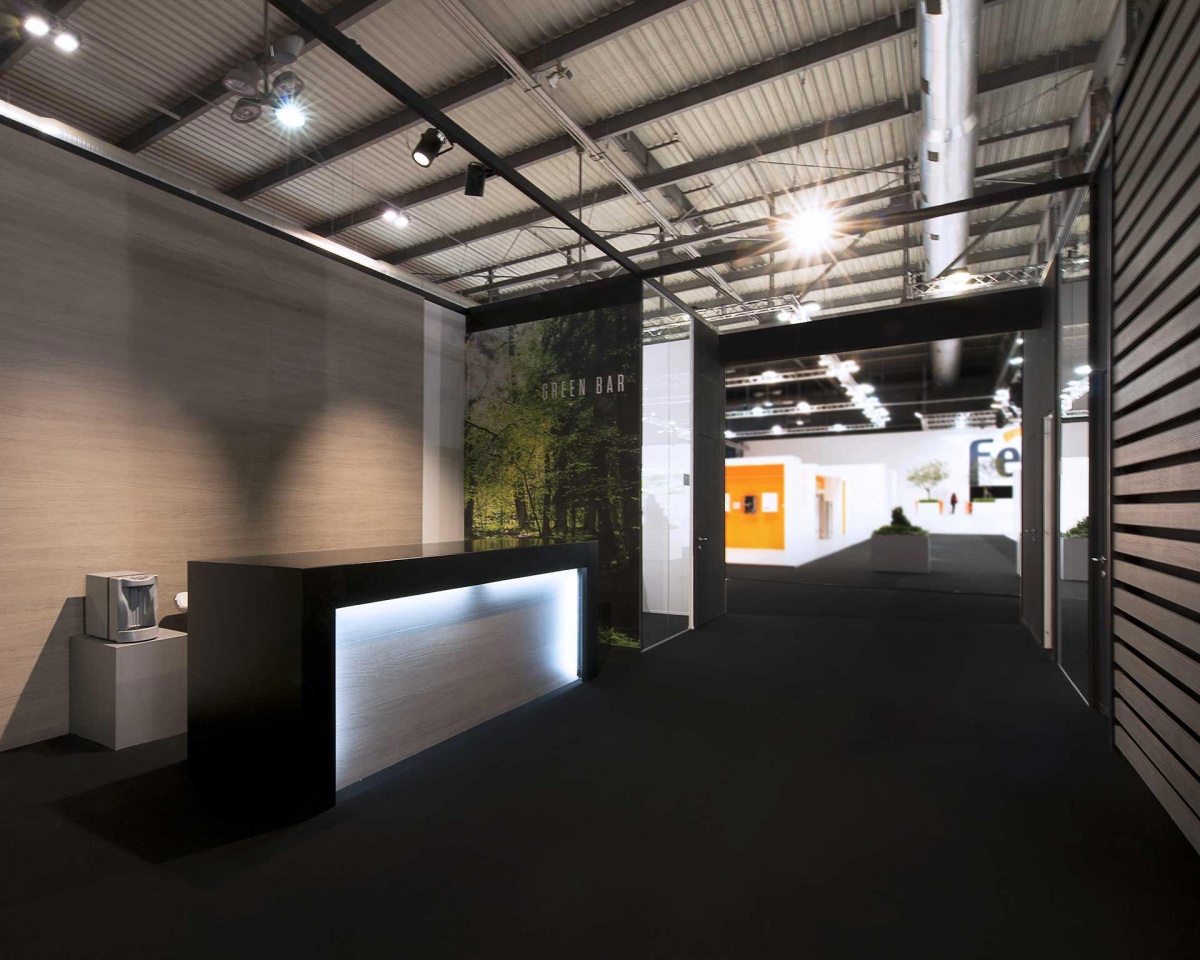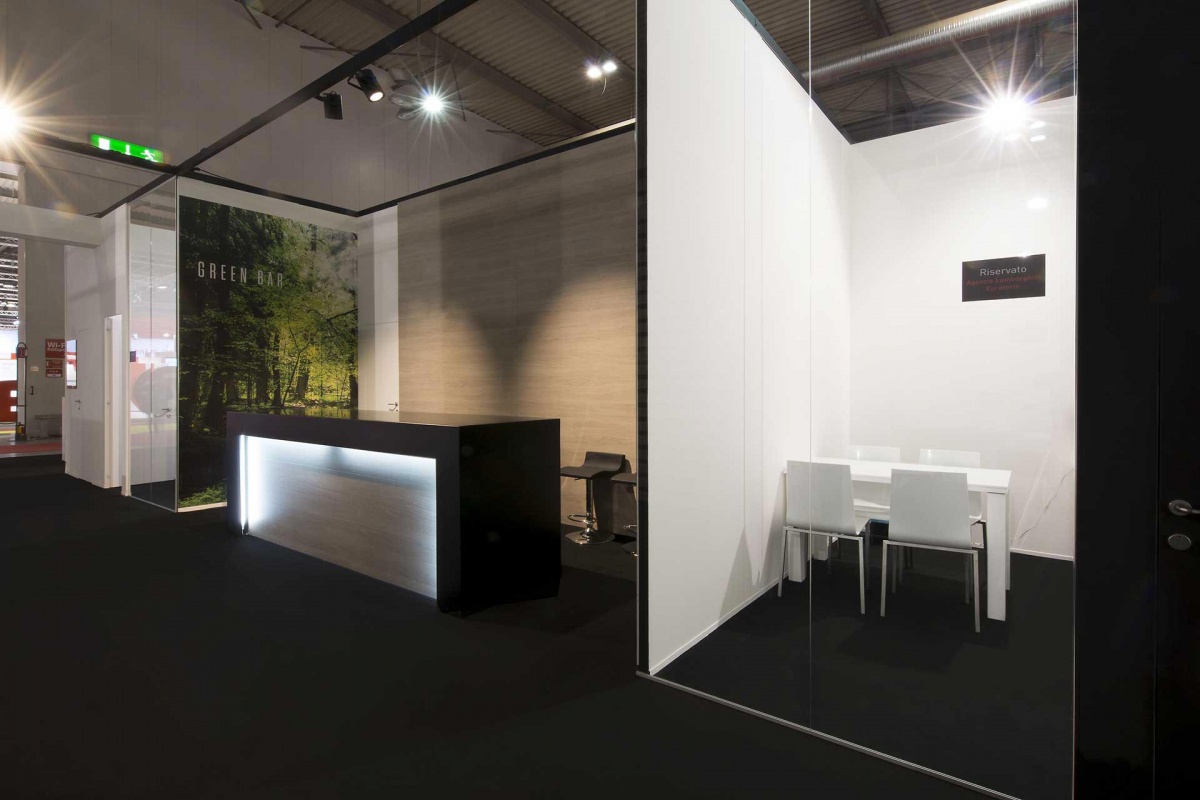 Lo sviluppo tecnologico dei prodotti Lamborghini sono sempre affiancati da una certa attenzione al risparmio energetico e all'ecologia. Ecco perché all'interno di ambientazioni moderne e minimaliste, la presenza di un tocco green e dell'utilizzo del legno naturale sulle pareti esterne dello stand.